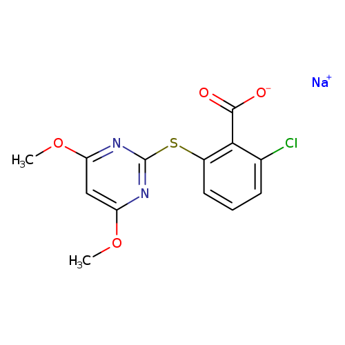 | T3D3917 | Pyrithiobac-sodium 123343-16-8 | C13H10ClN2NaO4S 348.737 g/mol |