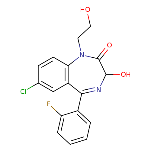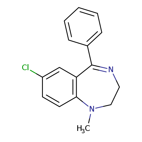 | Benzodiazepines bind nonspecifically to benzodiazepine receptors BNZ1, which mediates sleep, and BNZ2, which affects affects muscle relaxation, anticonvulsant activity...more Number of Targets: 19 | |